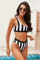 Add a dash of retro vibe to your beach look and take polaroid pictures in this striped bikini set featuring a tank top and a high waist bottom.