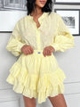 Eyelet Long Sleeve Shirt and Skirt Two-Piece Set